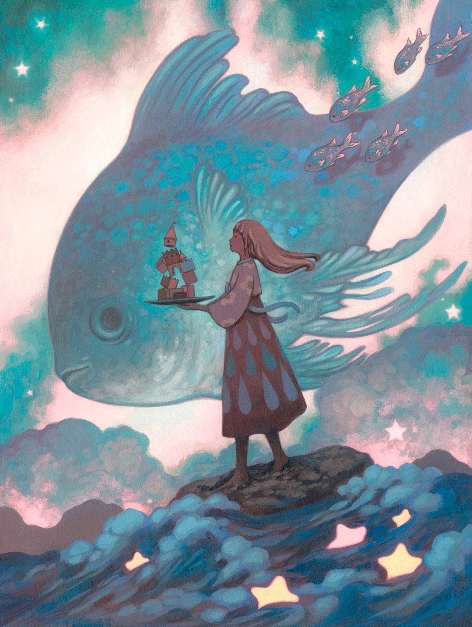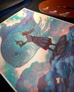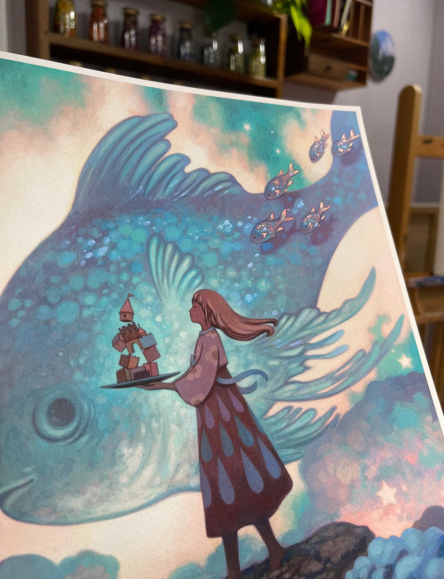 each print is delicately hand embellished with multiple colors of iridescent inks